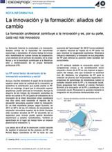 Aunque muchos reconocen el papel de la educación superior como factor de estímulo de la innovación, se subestima la contribución que puede prestar la FP. Esta, sin embargo, al igual que la educación superior académica, puede estimular la innovación. Aunque la mayoría de los índices de innovación existentes no tienen en cuenta la FP, el Cuadro de indicadores de la innovación de la Unión (Innovation Union scoreboard) nos dice cómo está creciendo el impacto de la educación secundaria superior sobre la innovación. Es un dato importante porque, según Eurostat, en 2013 el 49 % de los 22 millones de estudiantes de educación secundaria superior de la Unión Europea (UE) cursaban estudios de FP. El desarrollo de su capacidad para innovar puede aportar beneficios económicos y sociales considerables. También el aprendizaje en el lugar de trabajo tiene un impacto positivo en la innovación