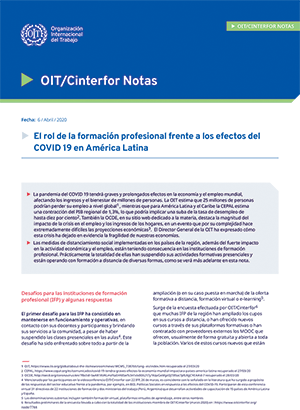 El rol de la formación profesional frente a los efectos del COVID 19 en América Latina. Nota OIT/Cinterfor
